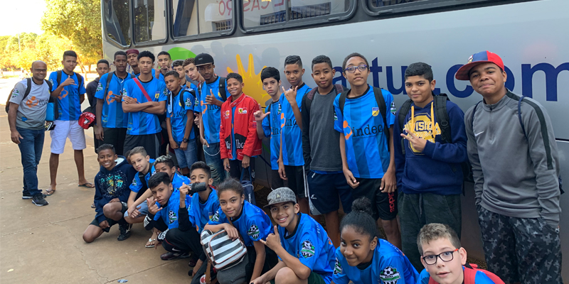 Com a gente, levamos a turma do projeto Futuro da Comunidade, uma excursão que era tão aguardada por eles (várias nos disseram que nem dormiram à noite). Foi muito legal ver a alegria dos meninos em viajar para outra cidade, onde promovemos dois amistosos de futebol contra o projeto Vem Ser Para Vencer.