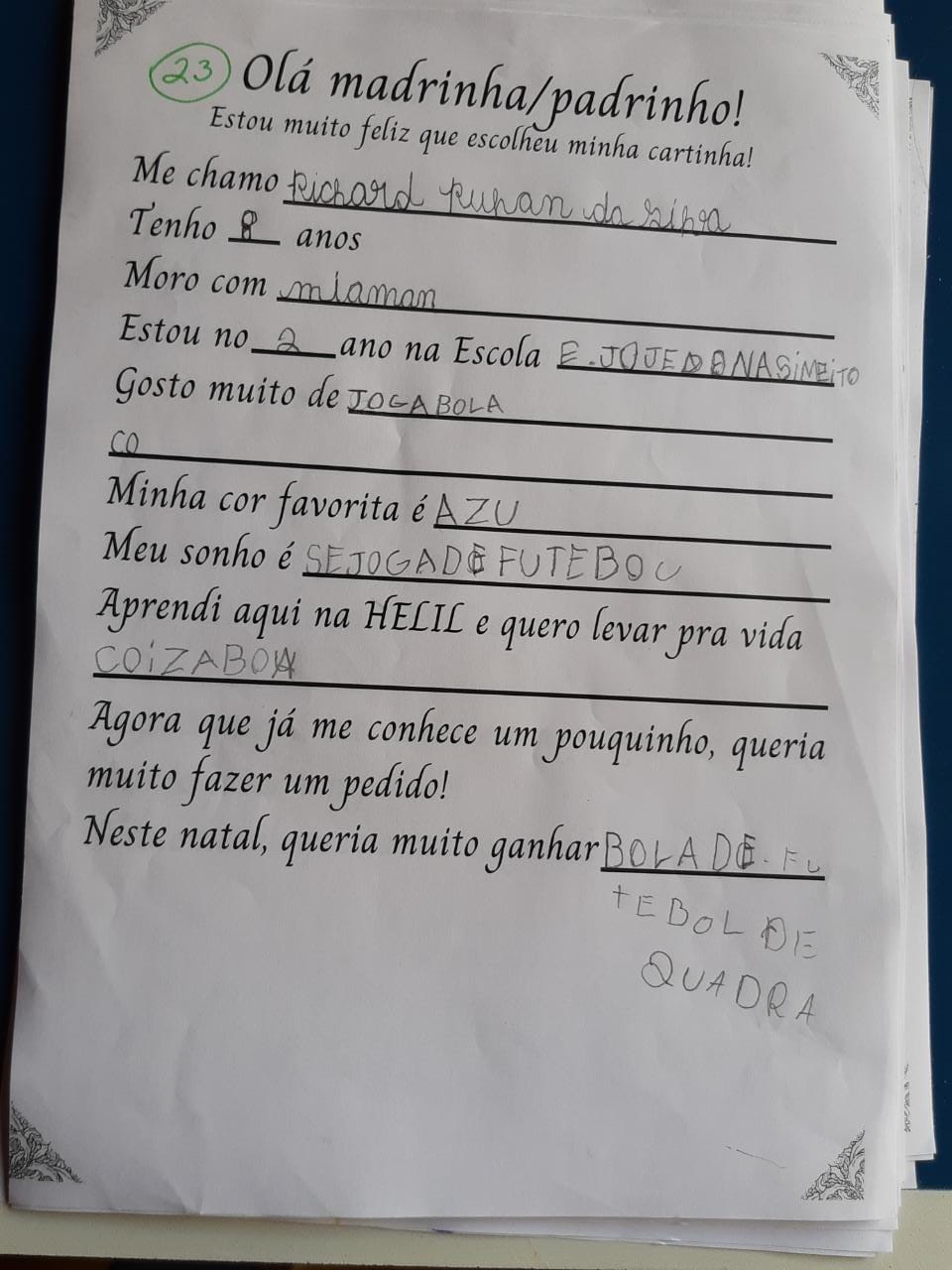 23 – RICHARD – 08 ANOS – BOLA DE FUTEBOL (adotada)