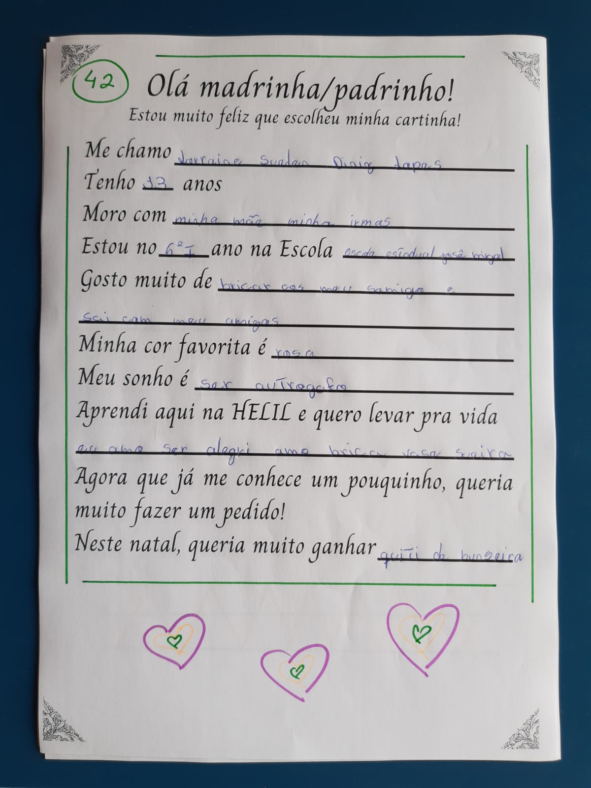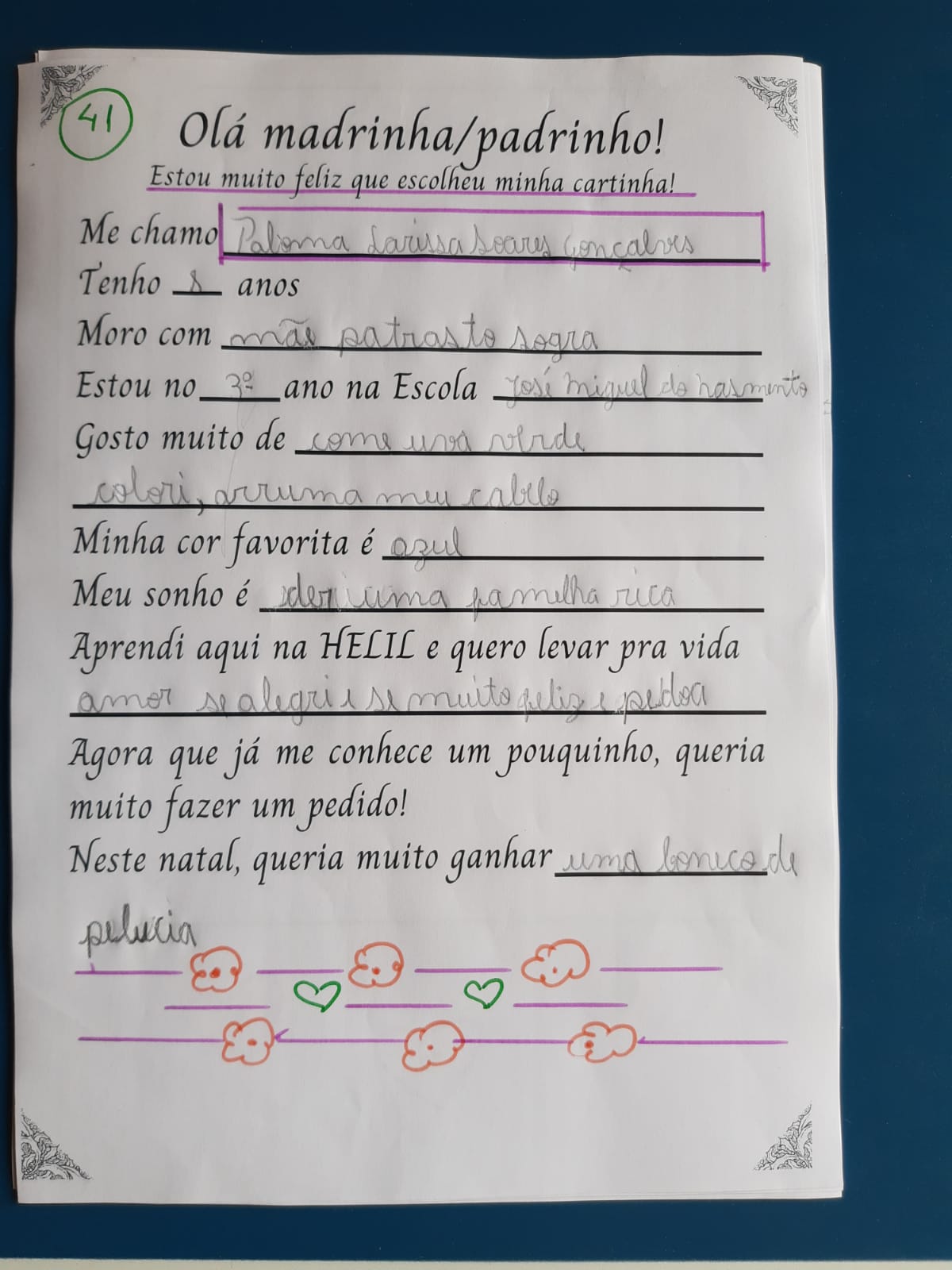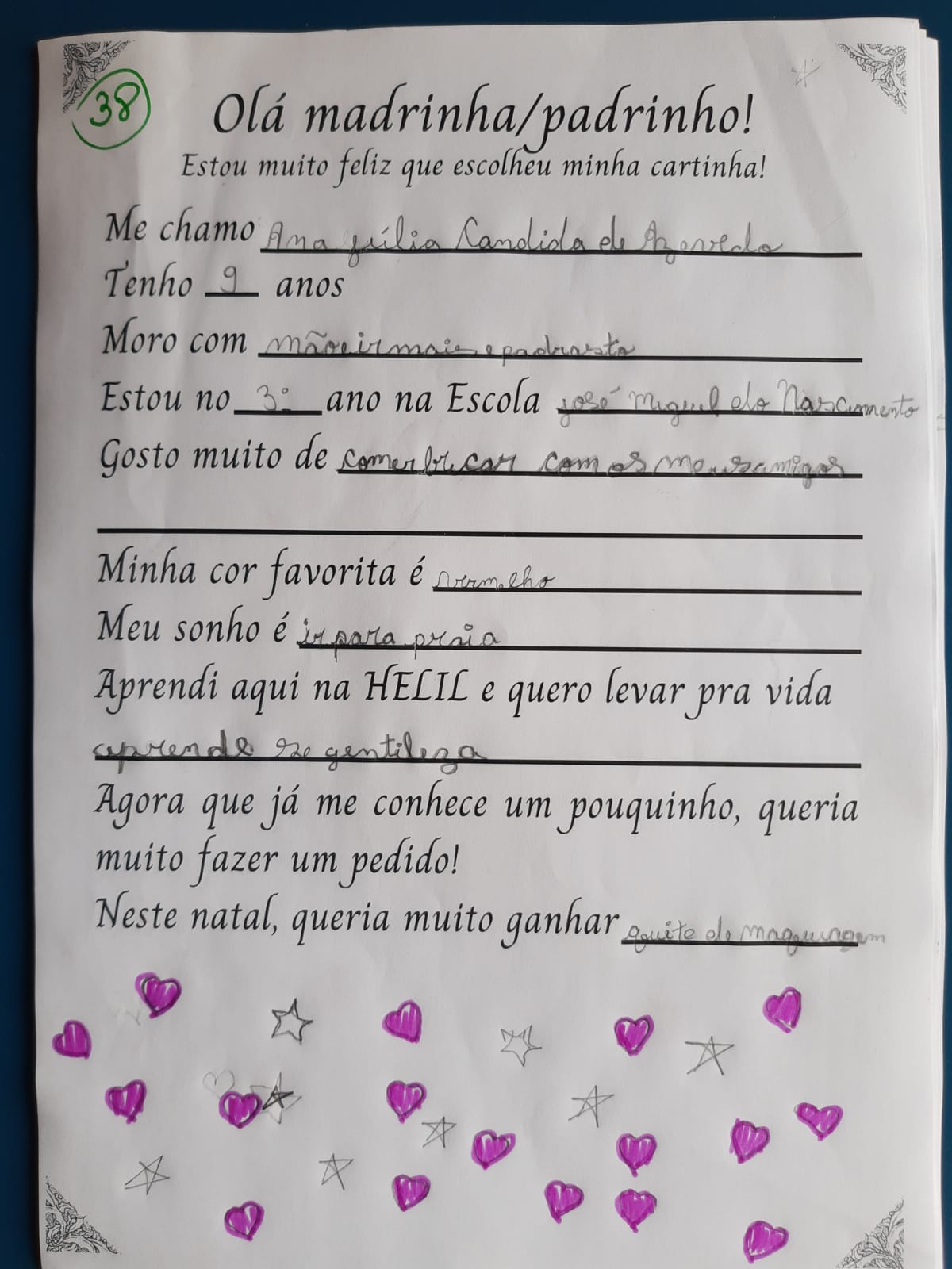 Dessa vez, as cartinhas com os pedidos para o Papai Noel foram escritas pelas crianças em situação de vulnerabilidade de um dos nossos projetos, Associação Helil de Amparo à Criança, localizada no Bairro Novo das Indústrias. Os idosos da Casa Lar Recanto dos Amigos, localizada no bairro Lindeia, também serão contemplados com os presentes de final de ano do INDEC. Que tal ser um padrinho ou madrinha de uma dessas cartinhas e fazer a magia do Natal acontecer?