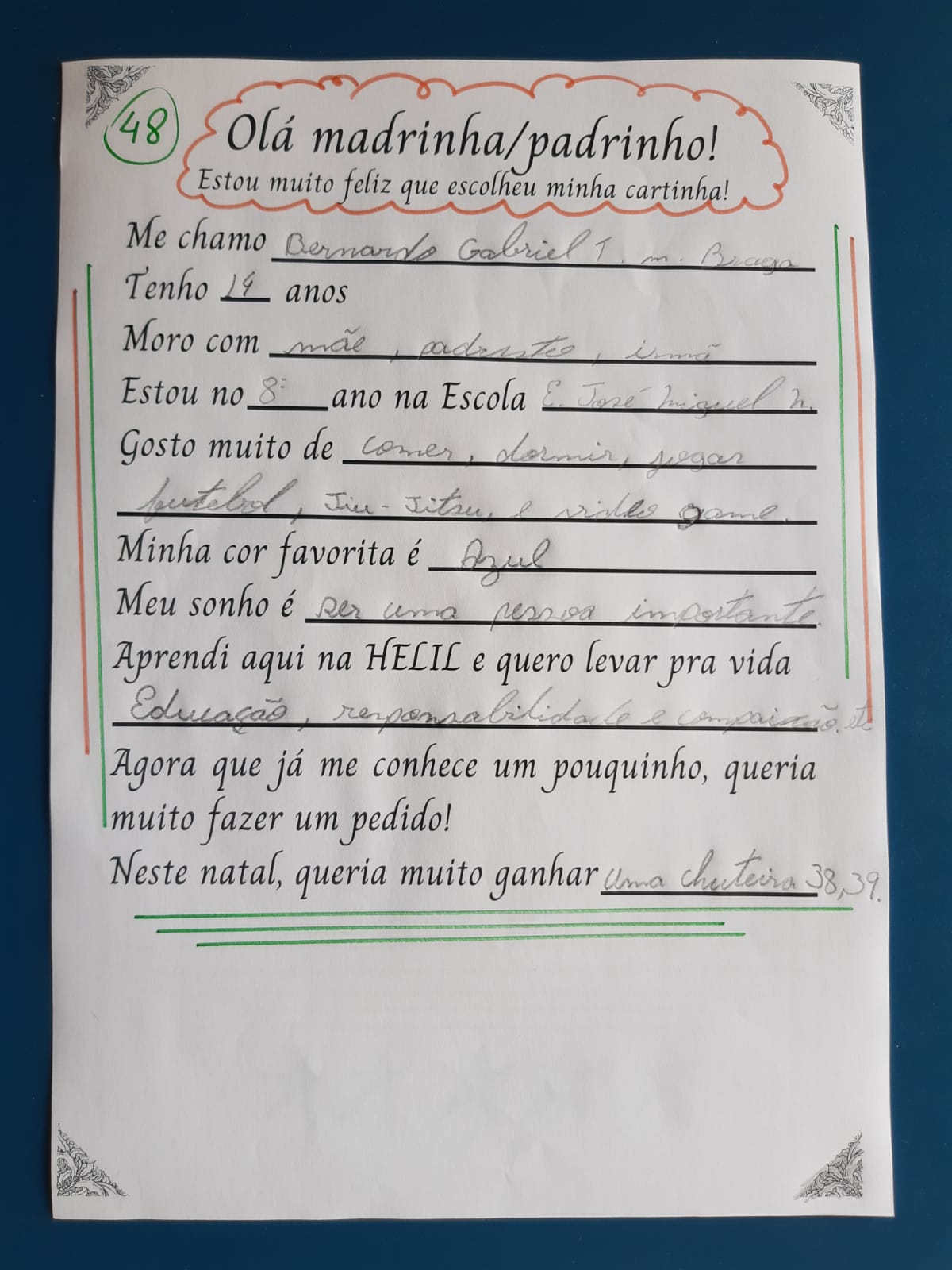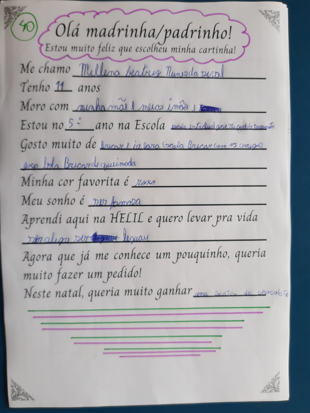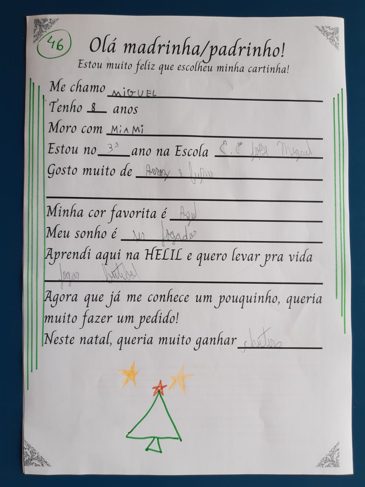 Dessa vez, as cartinhas com os pedidos para o Papai Noel foram escritas pelas crianças em situação de vulnerabilidade de um dos nossos projetos, Associação Helil de Amparo à Criança, localizada no Bairro Novo das Indústrias. Os idosos da Casa Lar Recanto dos Amigos, localizada no bairro Lindeia, também serão contemplados com os presentes de final de ano do INDEC. Que tal ser um padrinho ou madrinha de uma dessas cartinhas e fazer a magia do Natal acontecer?
