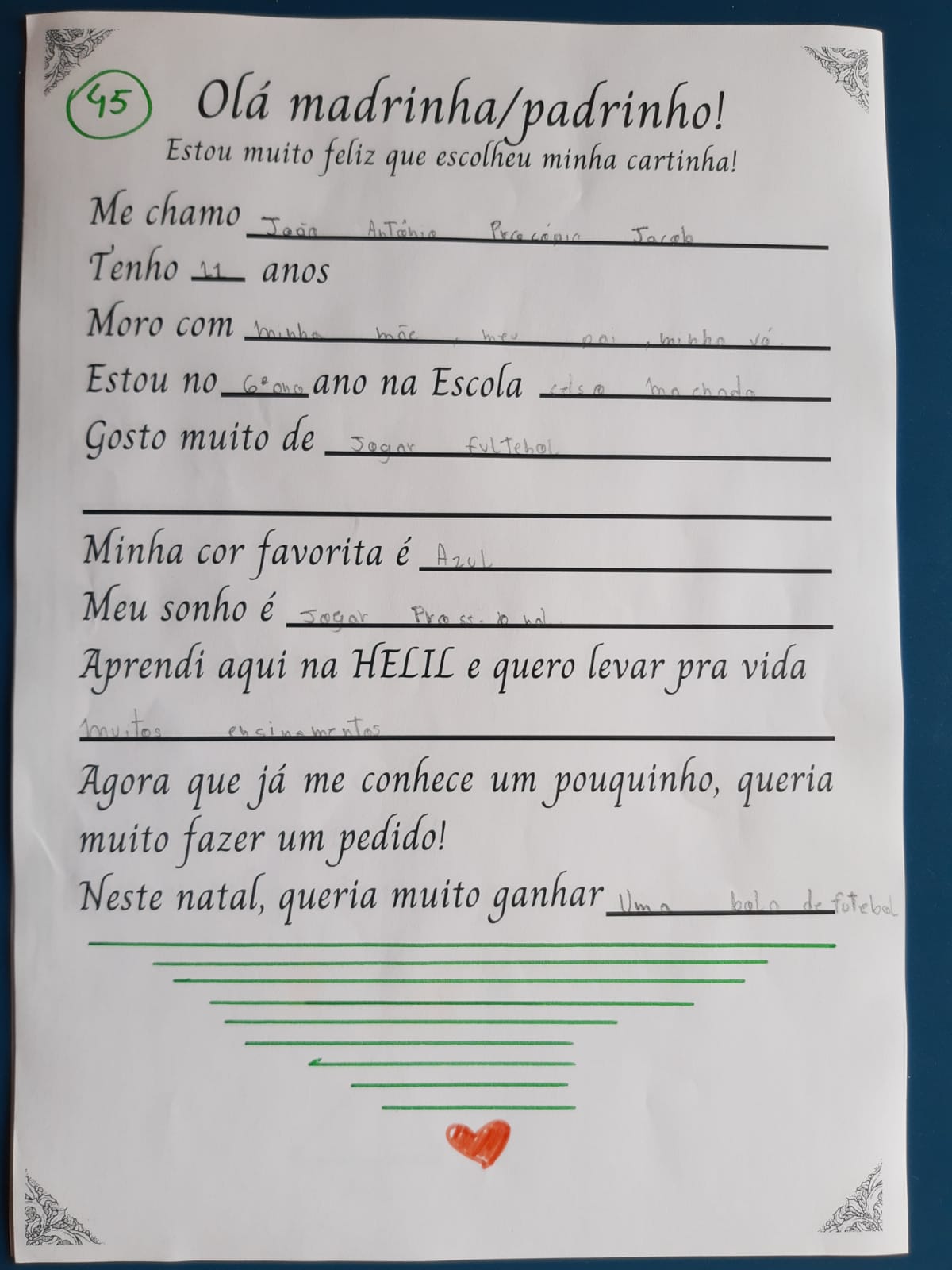 45 – JOÃO ANTÔNIO – 11 ANOS – BOLA DE FUTEBOL (adotada)