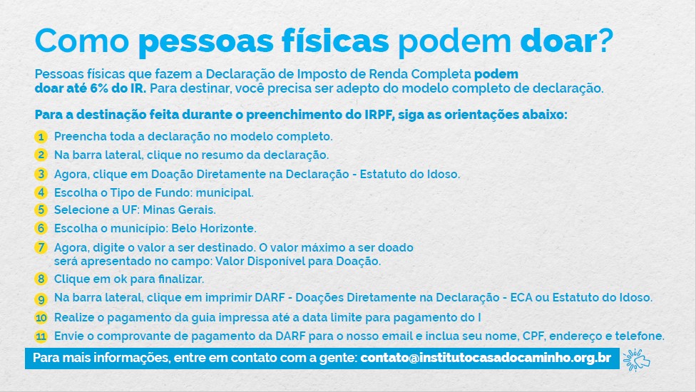 No ato da declaração, você pode escolher instituições para receber até 6% do valor total do imposto devido, sendo até 3% via FDCA – Fundo dos Direitos da Criança e Adolescente e 3% via FDCI – Fundo dos Direitos da Pessoa Idosa, tenha você imposto a pagar ou restituição.