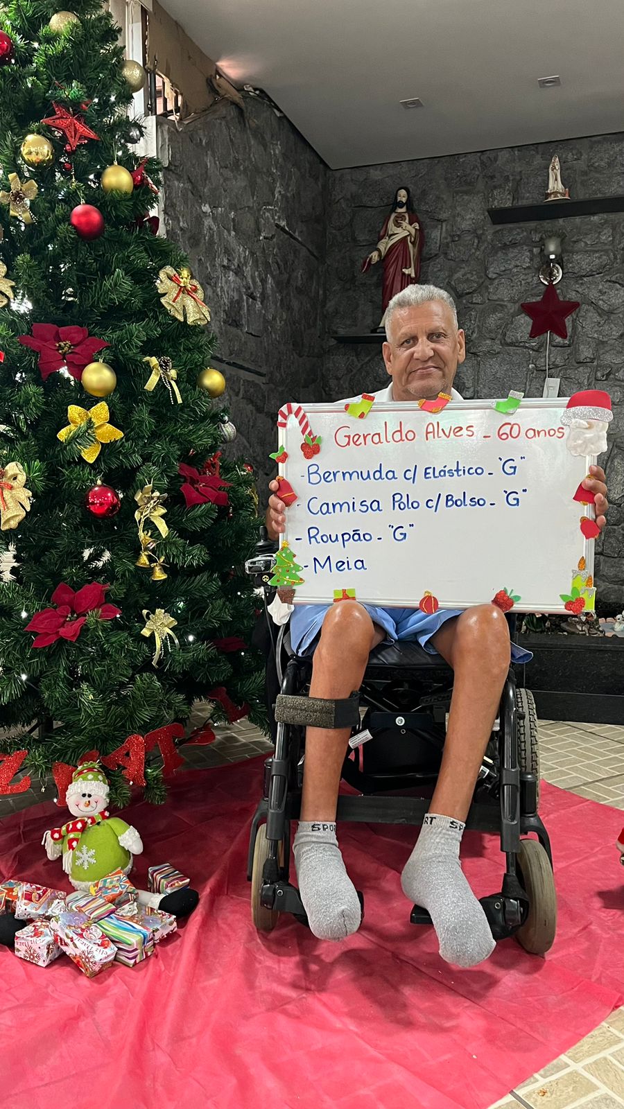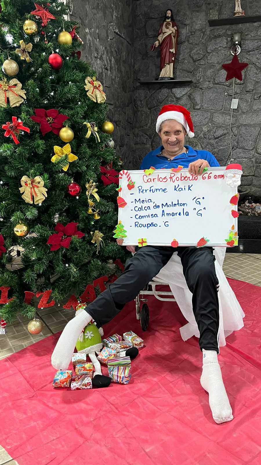 - Carlos – 66 anos – Perfume, Meia, Calça Moletom G (adotada)